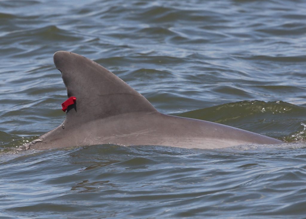 The dolphin exhibited deteriorated body condition, and worsening skin lesions. There is only a small area at the mouth of the creek where salinity levels are suitable for dolphins. Moving west in the creek, it becomes freshwater.  In consultation with NOAA Fisheries a rescue took place involving many collaborators.  During the rescue, we discovered that one of the dolphin’s flippers was badly entangled in fishing line. The gear was removed and wounds treated by a skilled veterinarian. Fortunately, the dolphin was otherwise healthy.The young dolphin was immediately relocated back to its usual habitat in the Halifax River. After two hours we were beyond thrilled to observe the young dolphin socializing with other dolphins and reuniting with her mother.