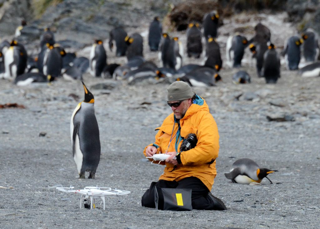 Penguin colony surveys from 2012 to 2019: Photographic observations and documentation of the distribution and abundance of penguins at selected breeding areas on South Georgia Island (a British Overseas Territory in Antarctica). This has been accomplished using small aerial tele-robots (a.k.a., quadcopter drones) equipped with high resolution cameras which has allowed us to map the distributions and abundances of penguins and the characteristics of their terrestrial habitats from the acquired photographs. Using computer assistance we can rapidly count the animals in the photographs and identify the species and age compositions of the groups of animals.