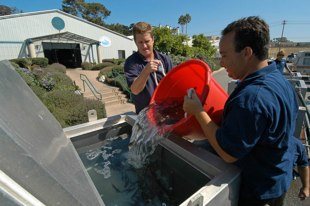 Healthy, sustainable fisheries are essential for reliable seafood supply and thriving recreational angling opportunities. However, many threats exist in the marine environment that have led to declining fish abundances.  Aquaculture offers a solution – cultured juveniles can be released to grow naturally in the wild and help restore fish populations.Hubbs-SeaWorld Research Institute is one of the leading proponents of this type of fisheries replenishment in the United Sates. Since the early 1980’s, we have been developing the aquaculture technology and expertise to release millions of white seabass (Atractoscion nobilis), a species highly prized by seafood consumers and anglers in California.  Through the support of Dorothea Laub, Paul and Norma Fruchbom and Chevron Corporation, HSWRI established the Dick Laub Fisheries Replenishment Program in 2014. This program aims to build on the approach developed for white seabass (i.e. fisheries replenishment using releases of cultured fish) and apply it to other marine finfish species in southern California.Our scientists work across a wide variety of disciplines (e.g. nutrition, health, genetics) and collaborate with fishing communities, resource managers and academia, among others, to ensure that fisheries replenishment work is carried out to the highest environmental standards.